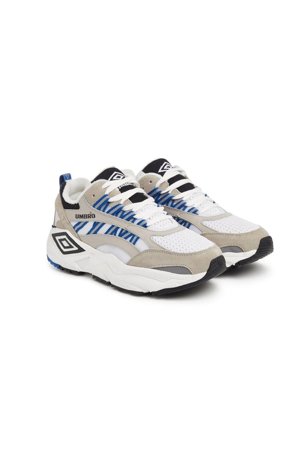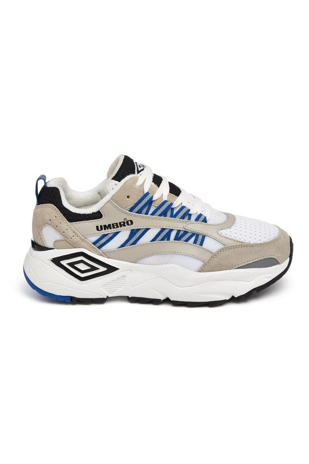 Umbro’s Neptune Trainer is a tribute to its original silhouette, with a touch of modernization. The sneaker retains its classic shape and incorporates retro-colored lace hooks and mesh details. The standout feature is the chunky sole unit, which adds a contemporary twist to the design. The Neptune Trainer is available in various colorways, including red, yellow, blue, and grey, each featuring distinctive highlights. The sneakers prominently display the Umbro branding, with an oversized black diamond logo on a white outsole and the Umbro logo emblazoned across the sides.