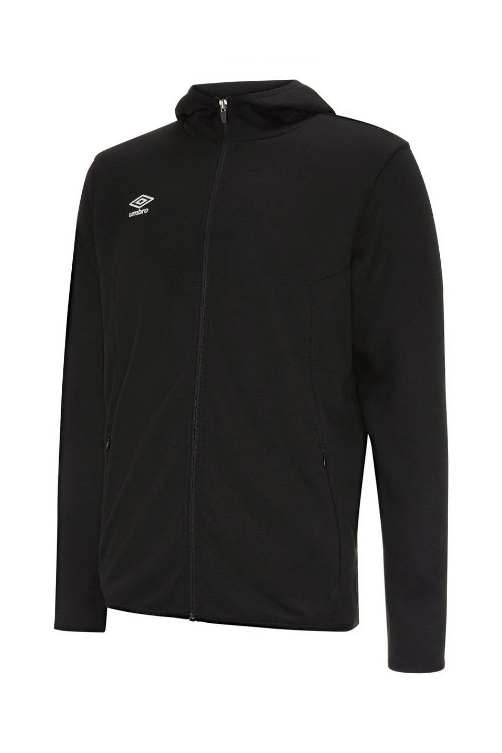 The Umbro Pro Fleece Hoody is ideal for chilly training sessions. Constructed from the perfect blend of cotton and polyester, this lightweight hooded jacket keeps you warm whilst allowing your body to breathe. Styled with a a full length front zip, discreet side zip pockets and a trimmed edge around the hood, cuffs and hem.