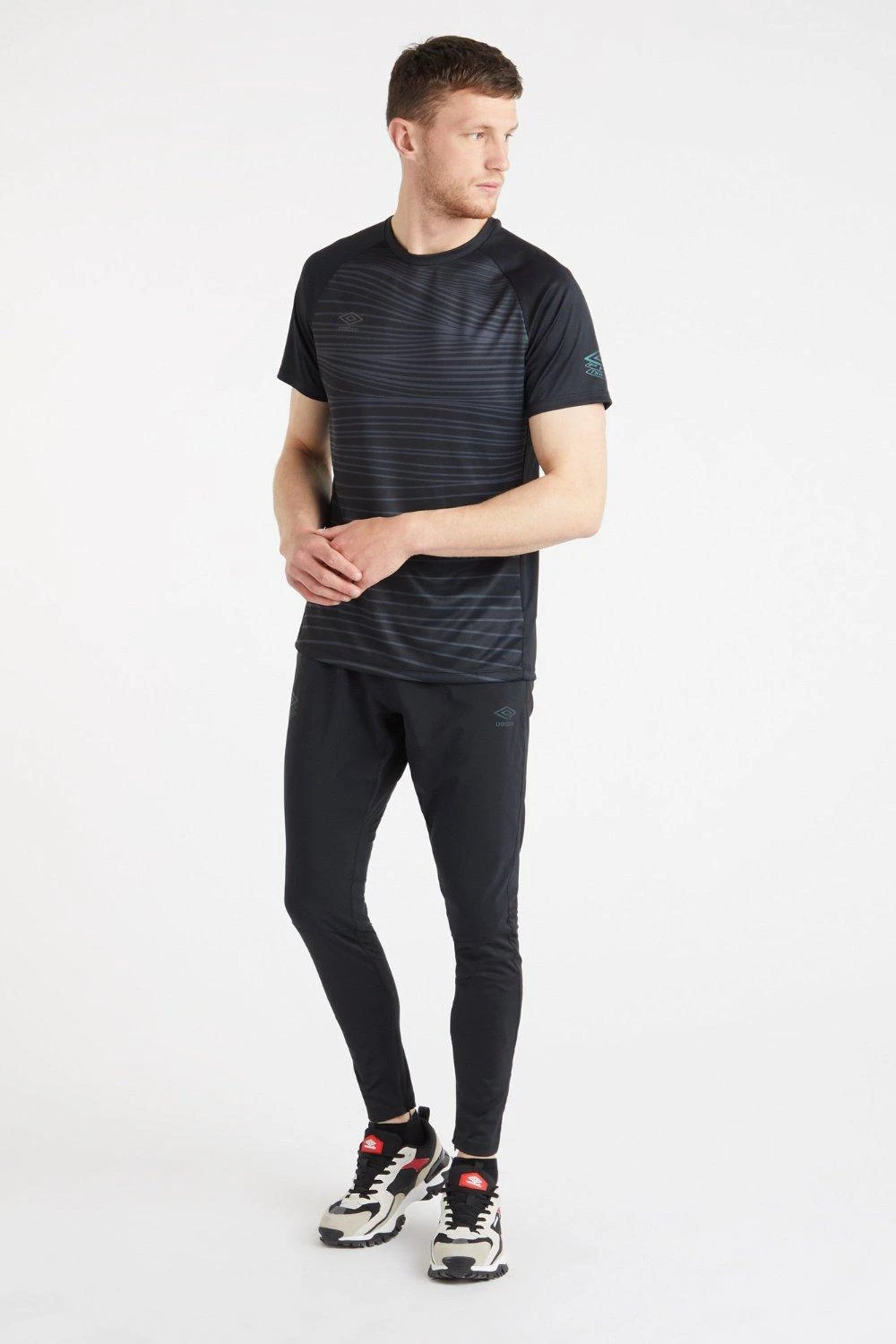 Take your training to the next level with the Umbro Pro Training Elite Hybrid Joggers. These pants feature a hybrid design with stretch woven thigh panels for optimal flexibility and durability. The stretch knit on the lower legs ensures a comfortable and unrestricted fit. The elasticated jacquard waistband offers a secure and adjustable fit, while the concealed side zip pockets provide convenient storage for your essentials. Stand out with the iridescent heat transfer diamond logo, adding a touch of style to your training attire.