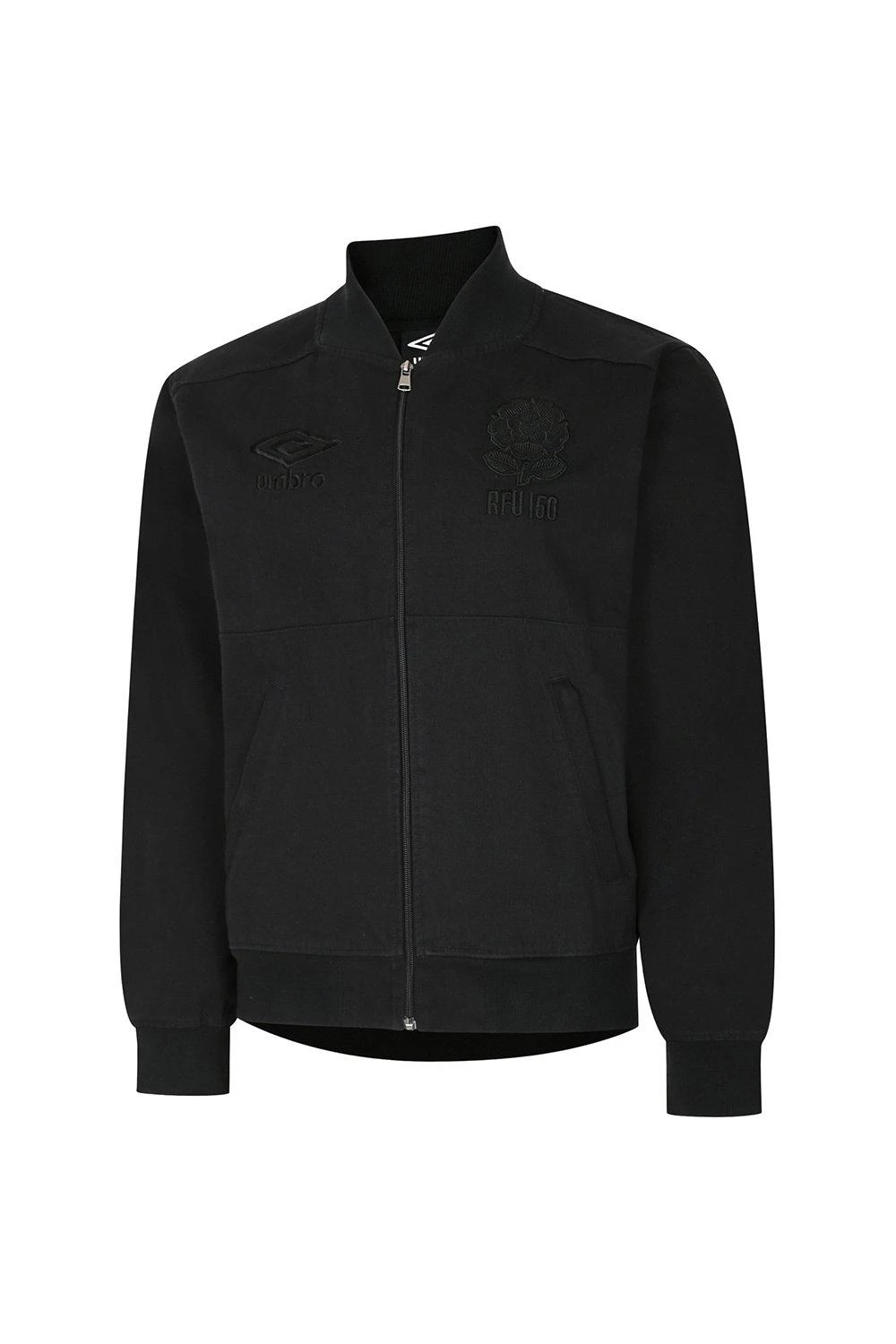 The RFU Walkout Jacket is a classic drill bomber style given a contemporary vibe in a simple monochrome fashion. As part of the Blackout collection the heavyweight cotton twill is given a heavy-laundered wash to soften and relax the look. Styled with a full zip with branded auto-lock zip puller, and zip pockets to the front, the stretch cotton ribs give a snug feel to the cuffs, hem and neck. The club crest and Umbro Diamond logo are featured to the chest in tonal, raised embroidery.