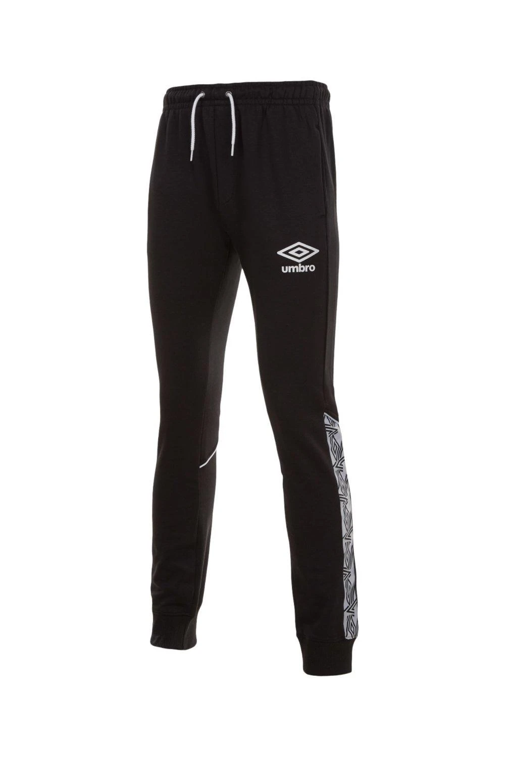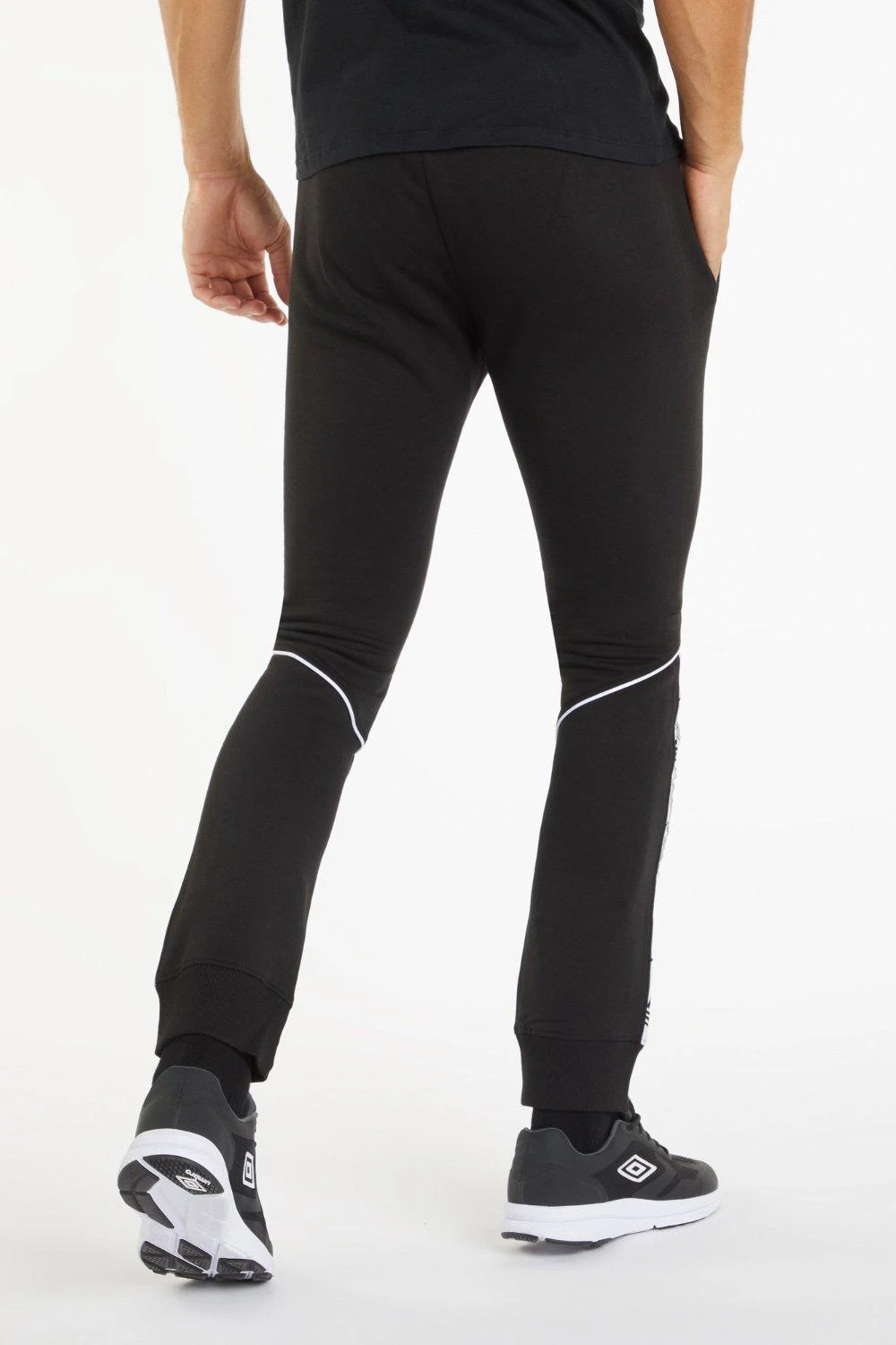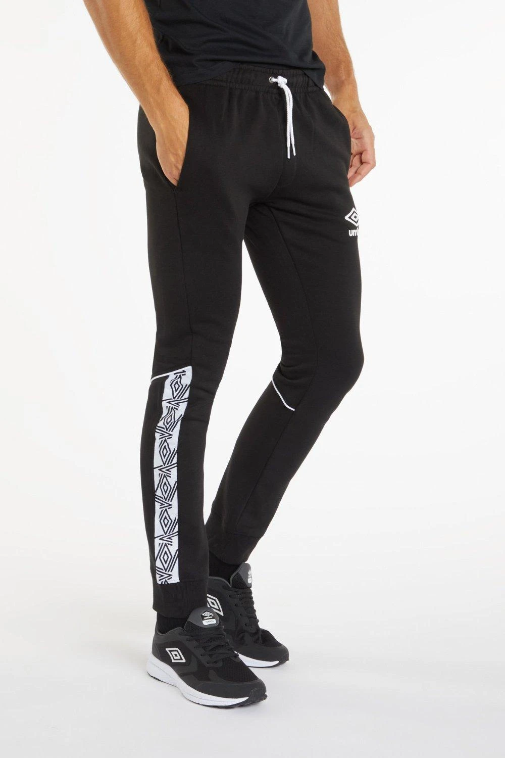 Skinny jogging bottoms with elasticated waistband with eyelets and round drawcord Side seam jetted pockets Ribbed cuffs Cut & sew back leg panel with inserted tape and contrast piping detail Slim fit silhouette Screenprint stacked Umbro brand diamond logo Perfect for training, gym or casual wear