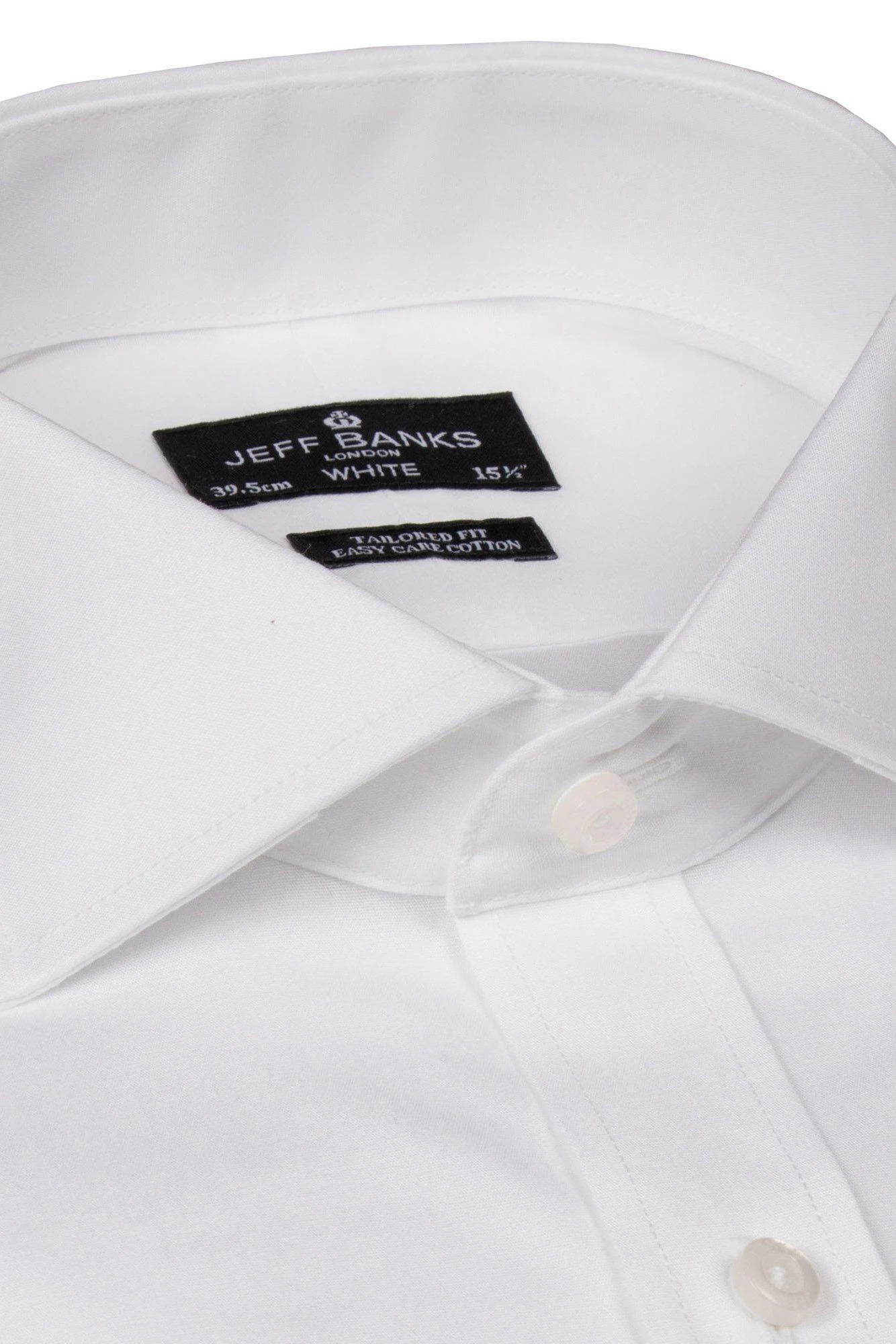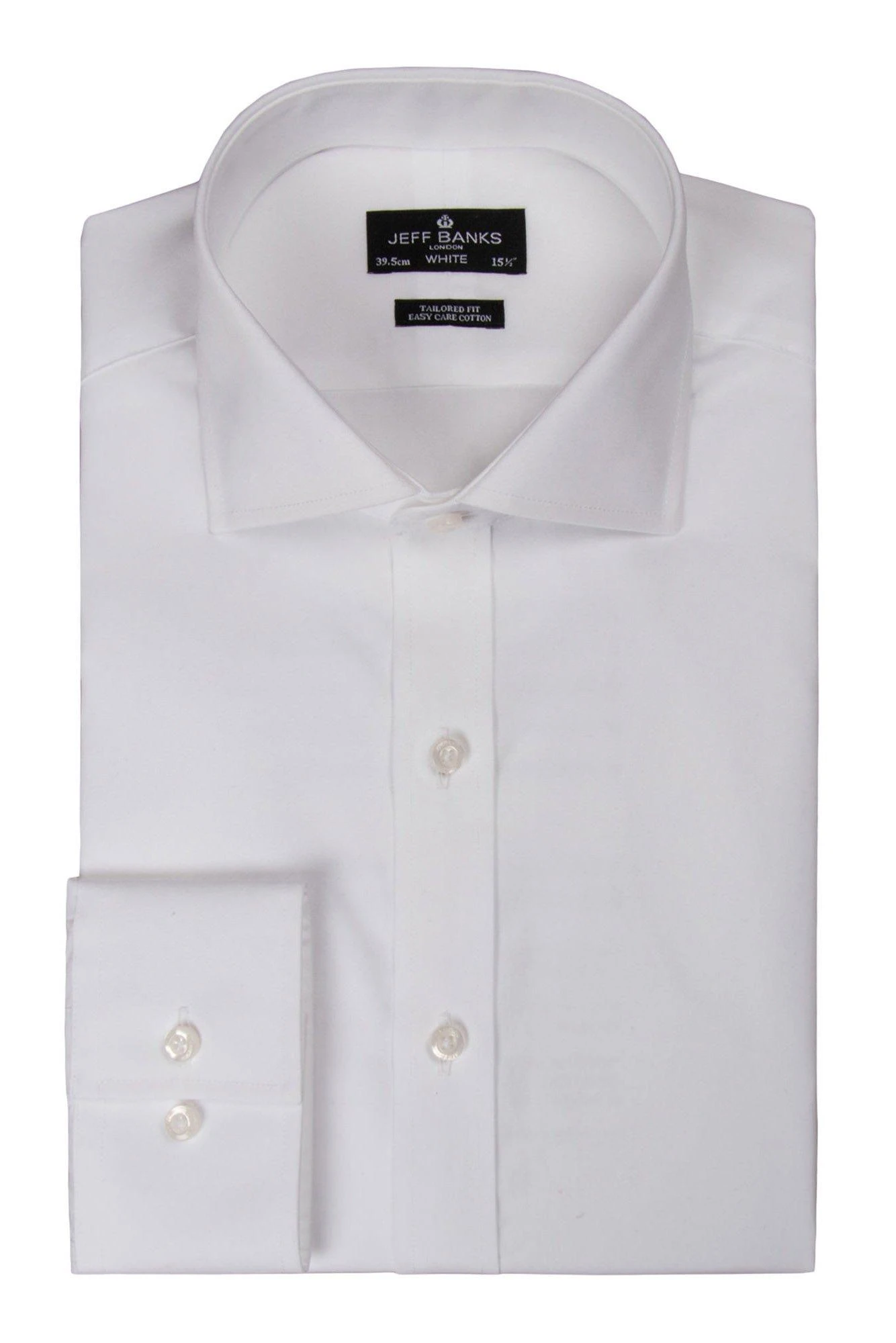 York Cutaway Shirt by Jeff Banks. The Jeff Banks shirt collection has something for everyone, whether it be occasions, business or smart – casual you can choose from a variety of collars, cuffs and fits. This style comes in a tailored fit and features a stylish cutaway collar and single cuffs. Perfect for everyday wear.